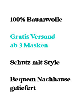 Unsere stylischen Gesichtsmasken bestehen aus 100 % Baumwolle und jede Einzelne wird von Hand gefertigt. Sie sind atmungsakt...